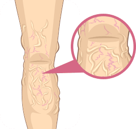 las arañas vasculares y las redes de vasos sanguíneos, el malestar, la fatiga y la pesadez de piernas por las noches.